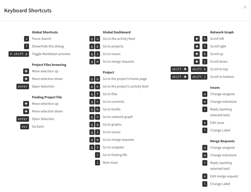 You can see GitLab's keyboard shortcuts by using 'shift + ?'